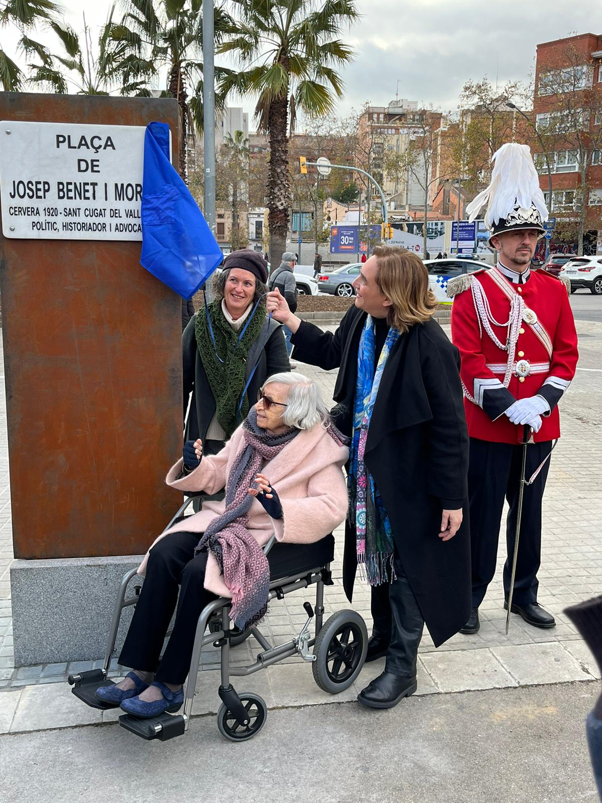 1. LA MEMÒRIA DEMOCRÀTICA. No crec que aquesta hagi estat la intenció de l’Ajuntament de Barcelona, però ha estat una coincidència agradable. La ubicació de la nova plaça Josep Benet, a la confluència de l’avinguda de la Meridiana amb el passeig de Fabra i Puig, és just el lloc on el 14 d’octubre de 2019 es va iniciar l’acció contra la repressió de l’independentisme que ara tothom coneix com el moviment Meridiana Resisteix. És una metàfora, que uneix un lluitador abnegat antifranquista amb la lluita dels defensors de l’1-O. De tot això no fa tants anys, però dissabte passat, en l’acte d’inauguració de la plaça, els crits a favor del moviment antirepressiu van incomodar les autoritats (vegeu la crònica de l’acte feta per la Càtedra UB Josep Termes). Potser no era el millor moment per manifestar la repulsa a l’alcaldessa amb aquells crits, però és que la ferida encara sagna. Aquesta plaça és postmoderna, sense cap adreça postal a la vista, perquè no hi ha cases al seu voltant, llevat de l’entrada de l’estació de tren de Sant Andreu Arenal. Ningú no podrà escriure mai el nom d’aquesta plaça, ni podrà fer-hi arribat mai cap carta o un paquet. El nom de Benet esborrarà la memòria de Meridiana Resisteix, que potser ja era la intenció dels que van triar l’emplaçament. La plaça de Josep Benet és un no-lloc, un lloc sense vida com diria Marc Augé, on tothom circula de pressa i l’espai esdevé anònim, menys l’indicador solitari que sosté la placa per identificar l’indret.